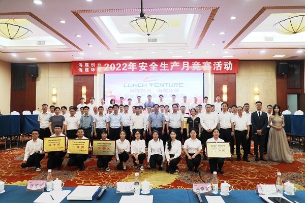 頒獎結束后,與會領導同參賽選手人員進行合影留念,至此海螺創業、海螺環保2022年安全生產月系列競賽活動圓滿結束。