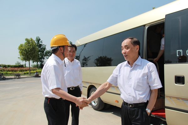 ? ? 上午10:30左右,沈副主任一行乘車到達(dá)亳州海創(chuàng)新型節(jié)能建筑材料公司,與現(xiàn)場(chǎng)迎接的新材料公司領(lǐng)導(dǎo)一一握手。