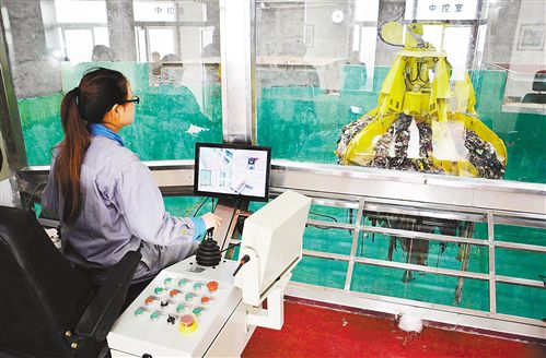 ????5月12日,記者在海螺水泥公司的忠縣綜合處理生活垃圾現場看到,一輛輛裝滿壓縮垃圾的環衛車過磅計量後,進入兩道電動密閉門將垃圾倒入一個巨大的垃圾儲坑??友Y面,一只巨大的“手”上下擺動,抓起一把把垃圾直接丟進焚燒爐。