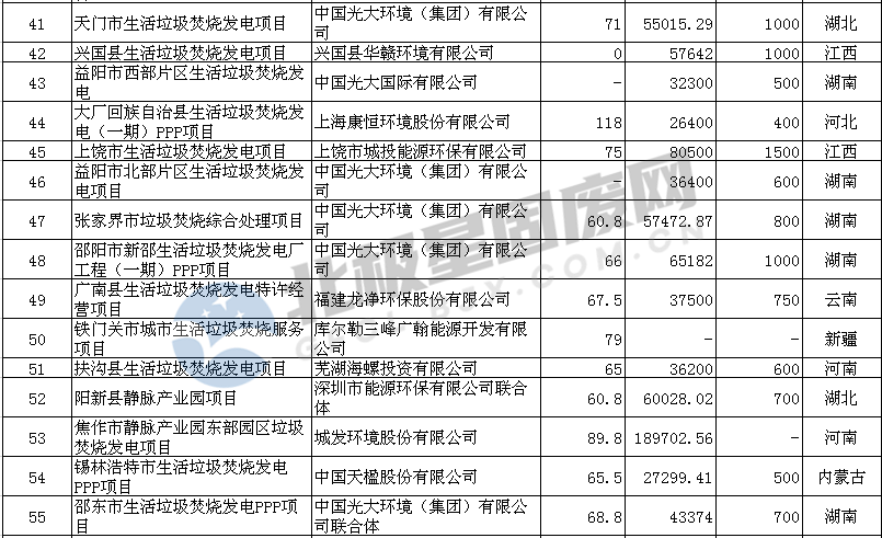 從69個中標的垃圾發電項目來看,湖南、河北、河南三個省份分別累計釋放11、9、8個項目,位居全國前三,湖北省中標5個垃圾焚燒發電項目位居第四位,華北、華中地區市場爆發,同時內蒙古、新疆等地也有項目釋放,青海西寧市垃圾焚燒發項目是青海省首個在建的大規模垃圾焚燒發電項目,市場進一步向西擴張。