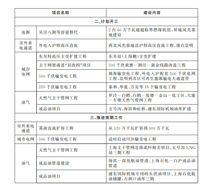 “十三五”期間,全市建成一批技術含量高、保障能力強的標志性能源項目。隨著淮南-南京-上海1000千伏特高壓交流通道和500千伏五角場變電站等重大電網工程建成投運,以“五交四直”市外來電通道和500千伏雙環網為支撐的城市主干電網結構更為完善。奉賢、崇明等燃機項目建成投產,閔行燃機項目開工建設,石洞口電廠等容量替代項目啟動實施,新增電源全部為清潔能源發電。建成洋山LNG儲罐擴建工程、臨港-上?;^天然氣管道等一批重點油氣項目,形成以“6+1”多氣源和C字形城市主干管網為支撐的聯供體系,出臺《上海市天然氣產供儲銷體系建設方案》,油氣應急儲備能力有效提升,天然氣產供儲銷體系在國內處于領先水平。