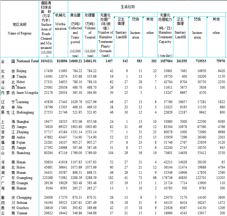 住建部發(fā)布《2021年城鄉(xiāng)建設(shè)統(tǒng)計年鑒》,2021年全國道路清掃保潔面積為1034211萬平方米,無害化處理廠達1407座,其中衛(wèi)生填埋場542座,垃圾焚燒廠583座,無害化處理能力達1057064噸/日,詳情如下: